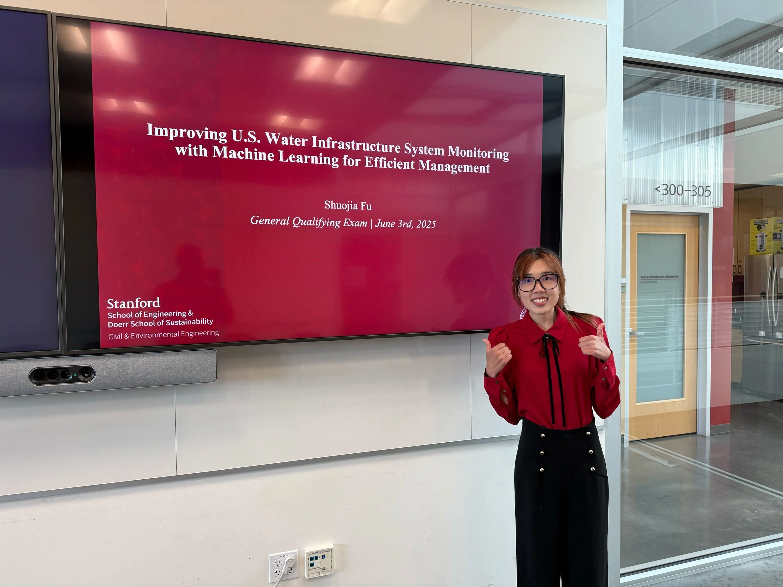 We are thrilled to announce that Shuojia has successfully passed her PhD qualifying examination on June 3, 2025! She presented her work on leveraging machine learning algorithms to manage and monitor water infrastructure systems across the U.S. efficiently. We’re incredibly proud of Shuojia’s achievement and look forward to the next chapters of her impactful research!